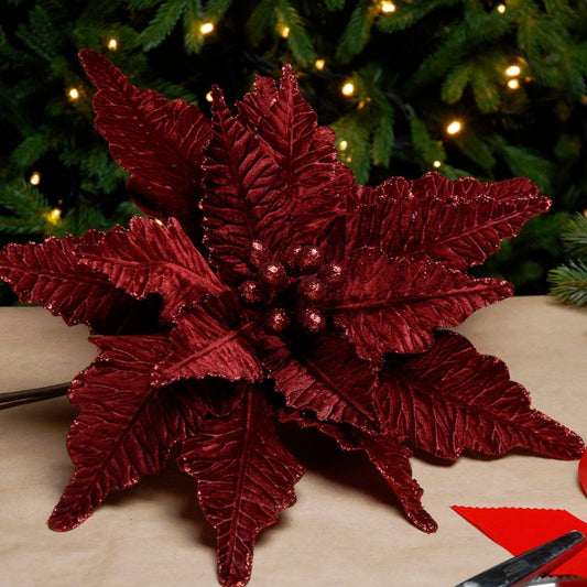 Burgundy Velvet Christmas Poinsettia Stem 68cm