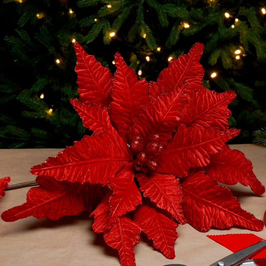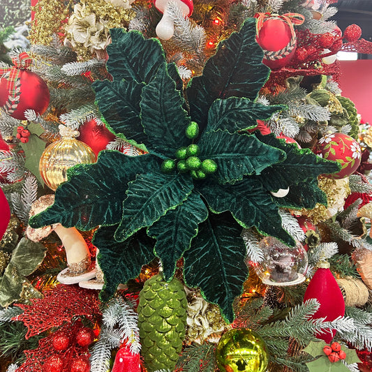 Dark Green Christmas Poinsettia Stem with Glitter 68cm