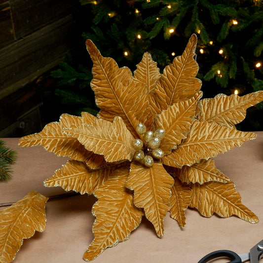 Gold Velvet Christmas Poinsettia Stem 68cm