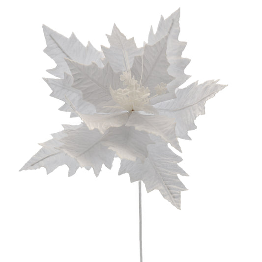 White Christmas Poinsettia with White Glitter Stem 70cm