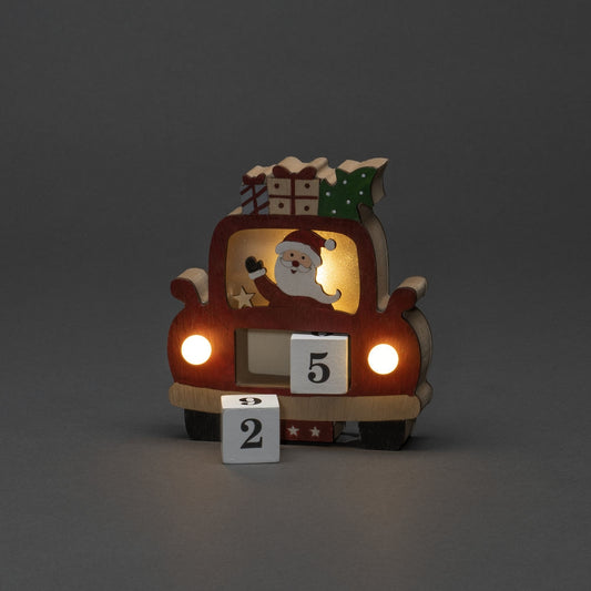Santa in Car Wooden Christmas Advent LED