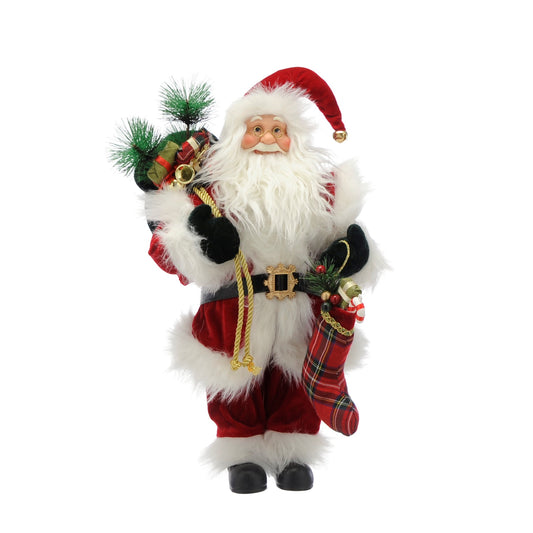 Standing Traditional Santa Christmas Decoration with Tartan Stocking 45cm