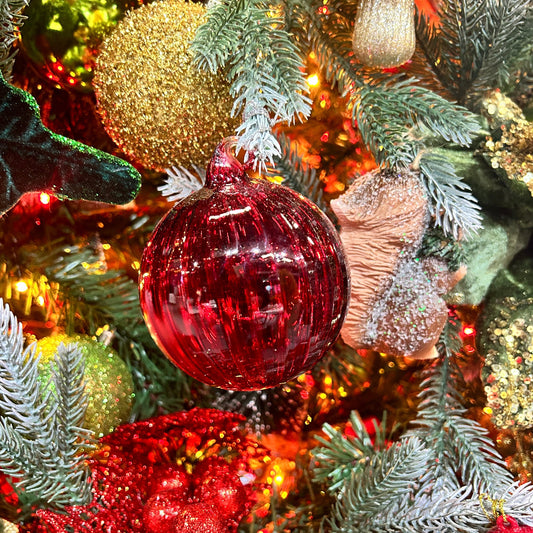 Translucent Red Glass Christmas Tree Bauble 8cm
