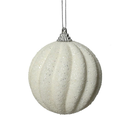 Winter White Christmas Glitter Christmas Bauble 8cm