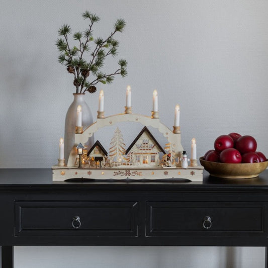 Wooden Candle Bridge with Lit Silhouette Christmas Village Scene