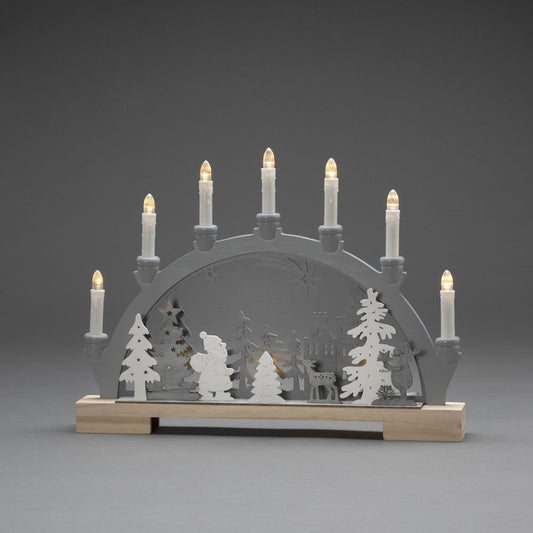 Wooden Candle Bridge with Lit Silhouette Santa Scene