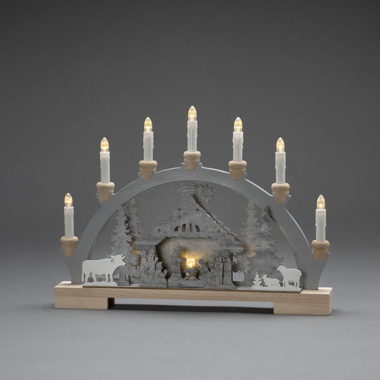 Wooden Candle Bridge with Lit Silhouette Nativity Scene