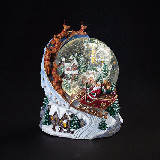 Christmas Snow Globe with Santa and Sleigh over the Village