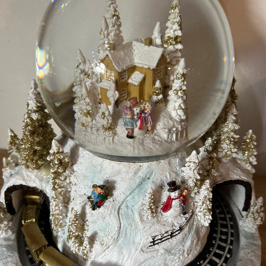 Christmas Train Scene White and Gold LED Snowglobe