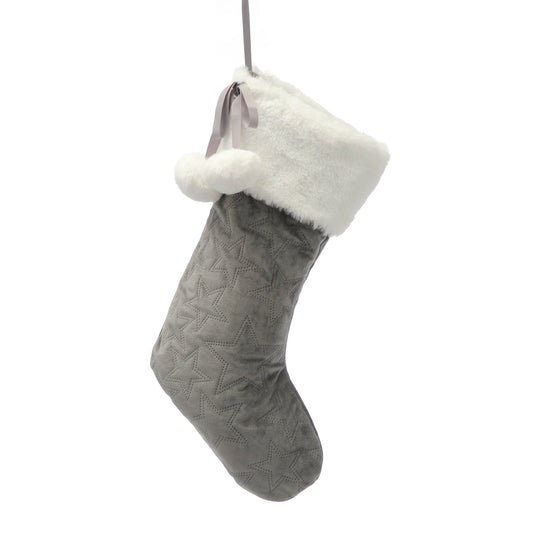 Grey Star Embossed Christmas Stocking Decorartion 48cm