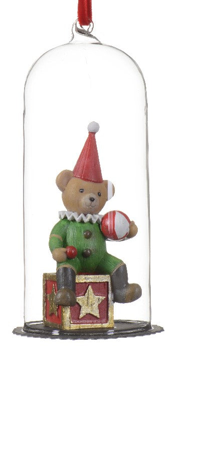 Hanging Glass Cloche with Teddy Bear Christmas Decoration