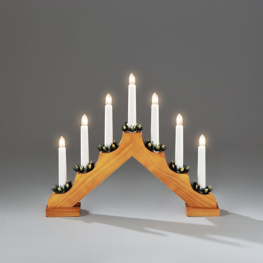 Oak Wood 7 Bulb Christmas Candle Bridge