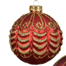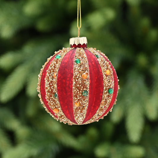 Red and Gold Glitter Jewelled Glass Christmas Tree Bauble