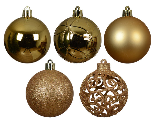Set of 35 Mixed Light Gold 6cm Christmas Baubles