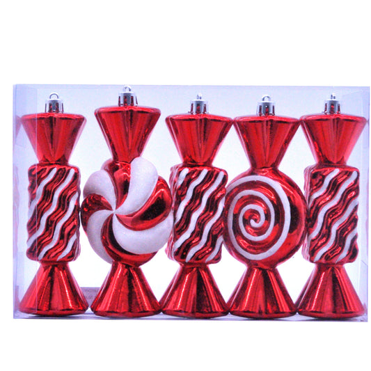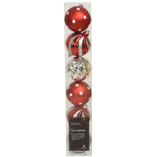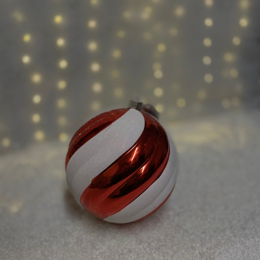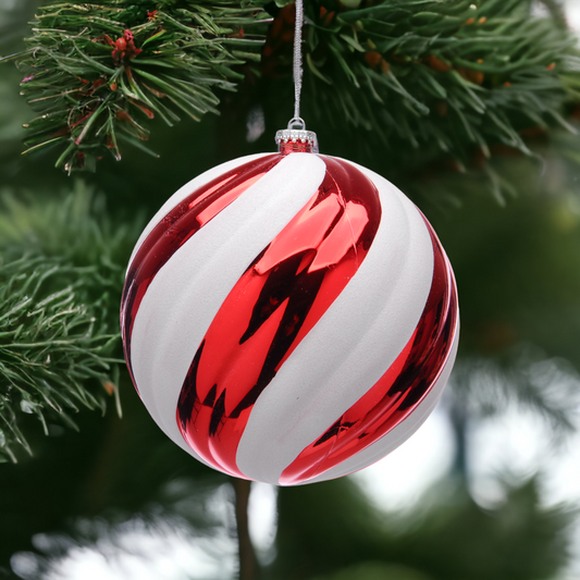 Set of 6 Red and White Candy Cane Christmas Baubles 8cm