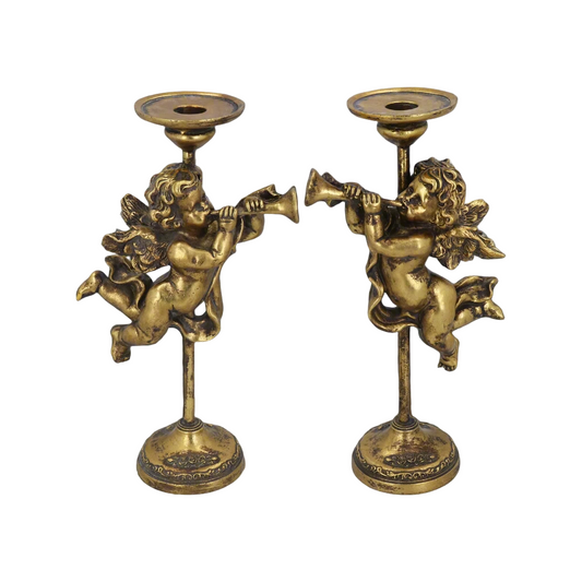 Gold Trumpeting Cherub Christmas Candlesticks
