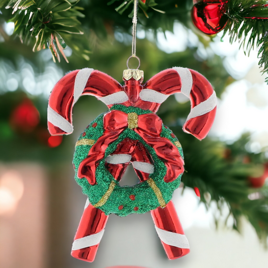 Candy Canes with Wreath Hanging Christmas Tree Decoration 12cm