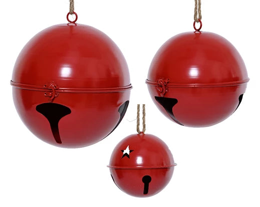 Set of 3 Red Oversized Metal Christmas Bell Decorations