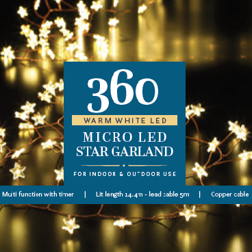 Noma 360 Warm White Micro Christmas Star Garland