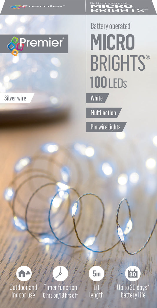 100 Warm White Microbright LED Pin Wire Christmas Lights