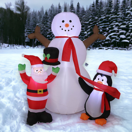 Santa Snowman and Penguin Light Up Inflatable Display Decoration