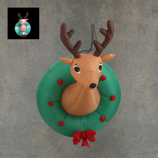 Christmas Reindeer Head Wreath Inflatable Display Decoration