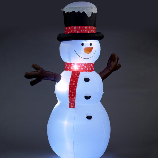 Inflatable 245cm Snowman with Red Scarf and Black Top Hat