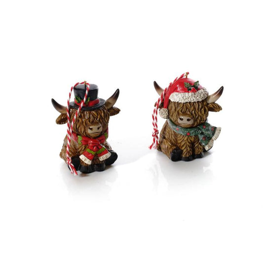 Highland Cow with Hat and Scarf Christmas Tree Decoration