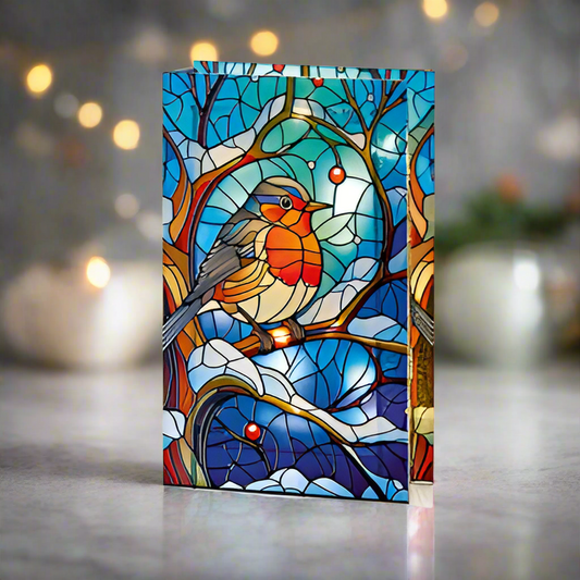 Robin on Branch Stained Glass Lit Christmas Ornament