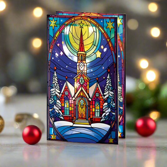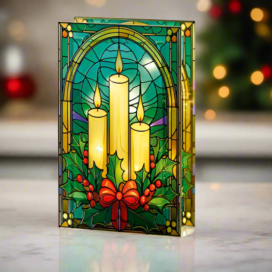 Candles and Holly Stained Glass Lit Christmas Ornament