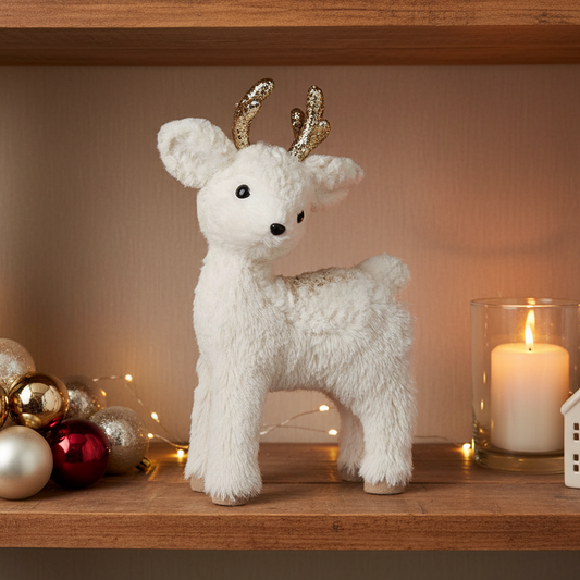 White Fur Baby Deer Christmas Ornament