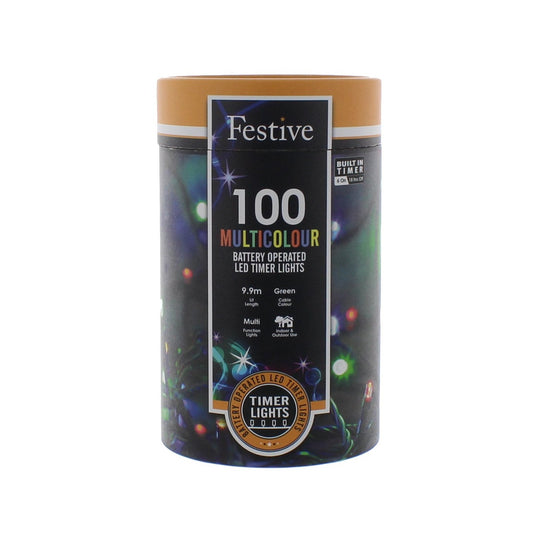 Festive 100 Multi Colour Battery Operated Christmas String Lights