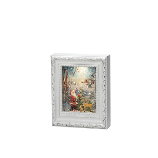 Konstsmide Christmas White Picture Frame with Santa Woodland Scene Water Lantern