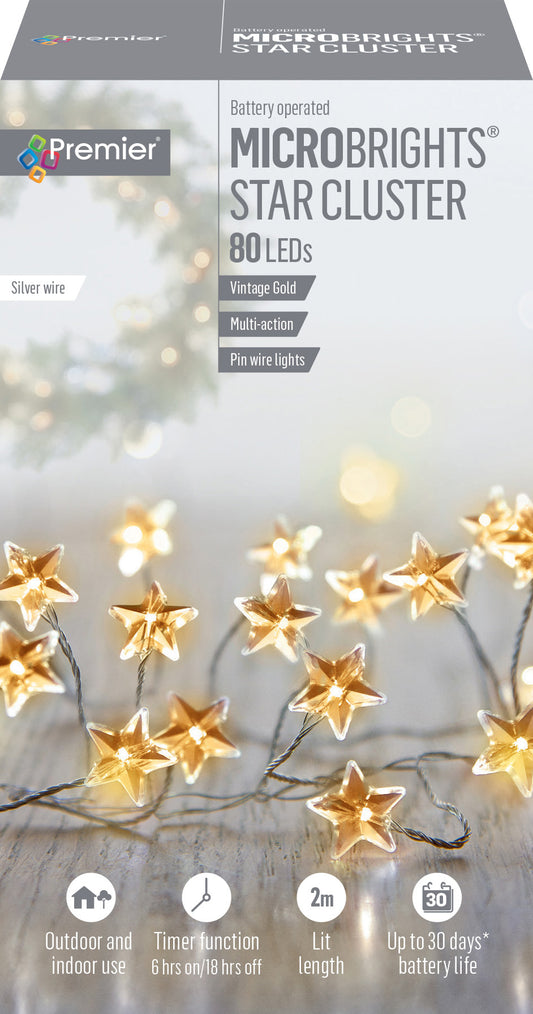 Premier 80 Microbrights Vintage Gold Star Christmas Cluster Lights