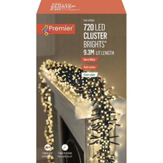 Premier 720 LED Cluster Brights Christmas Lights Warm White