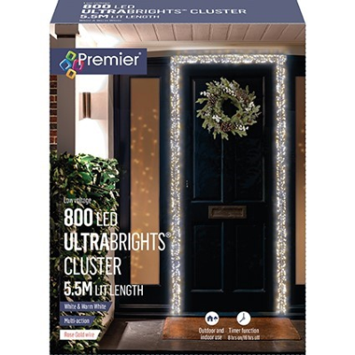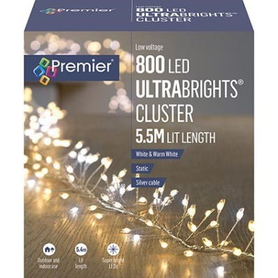 Premier 800 White & Warm White LED Ultrabrights Christmas Cluster Lights