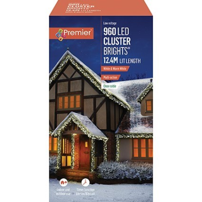 Premier 960 LED Cluster Brights Christmas Lights White & Warm White