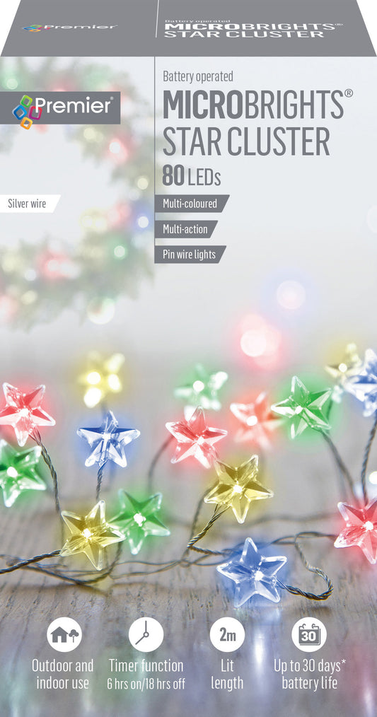 Premier 80 Microbrights Multi Coloured Star Christmas Cluster Lights