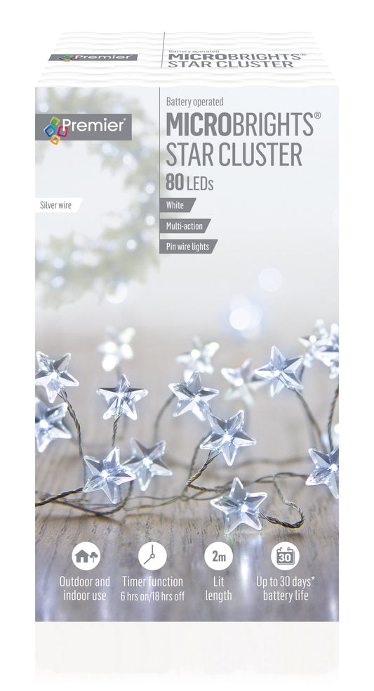 Premier 80 Microbrights White Star Christmas Cluster Lights