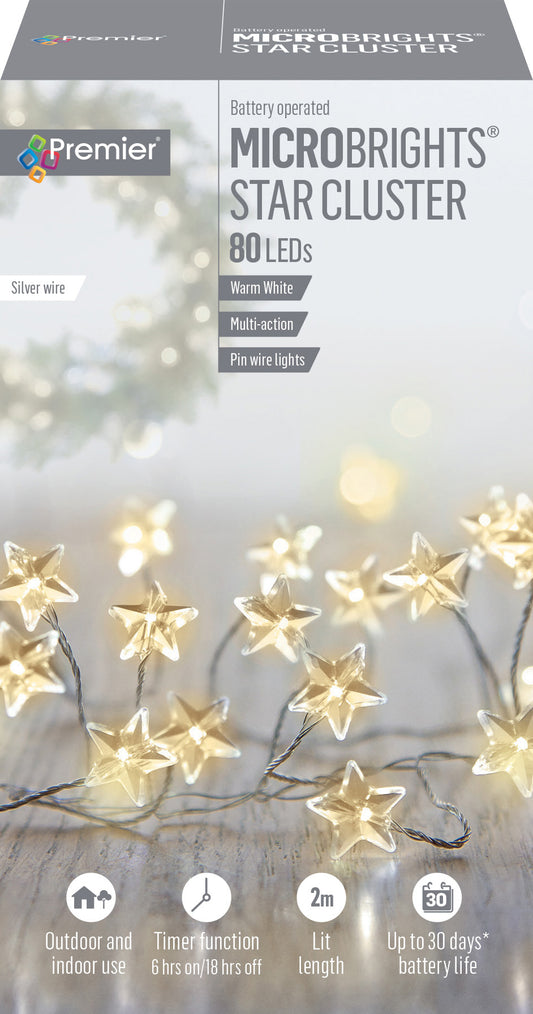 Premier 80 Microbrights Warm White Star Christmas Cluster Lights