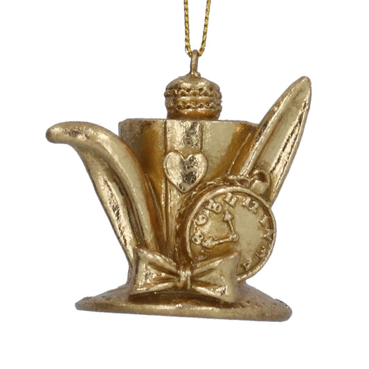 Gold Mad Hatter Hat Hanging Christmas Tree Decoration