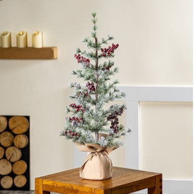 90cm Bristle Christmas Tree with Berries and Hessian Base