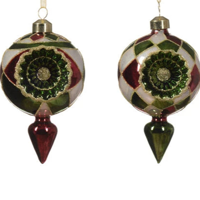 Retro Harlequin Pattern Glass Christmas Bauble Assorted