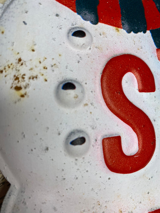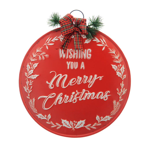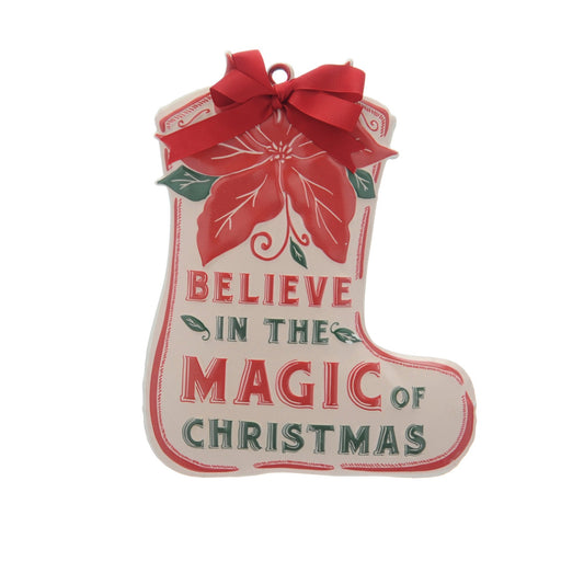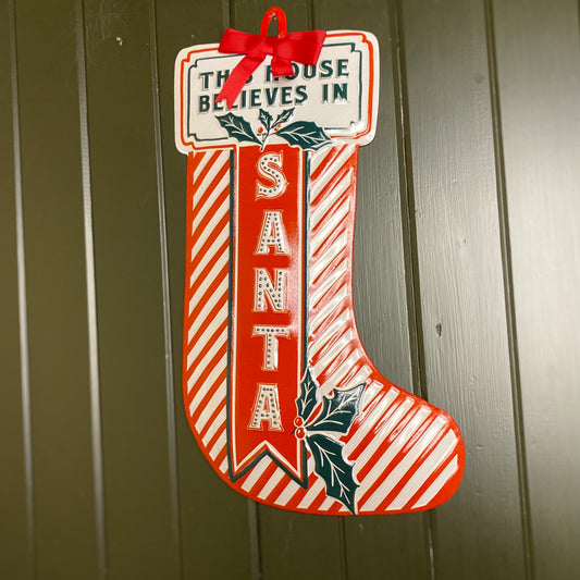 Christmas Vintage Style Red and White Stocking Shape Sign 39cm