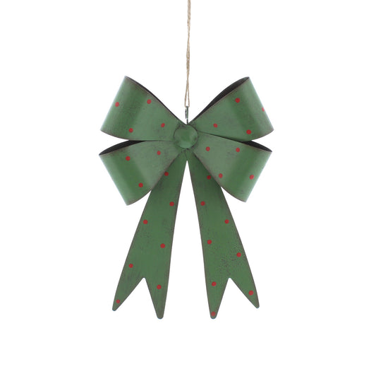 Blue Metal Bow with Gold Glitter Christmas Decoration Detail 25cm