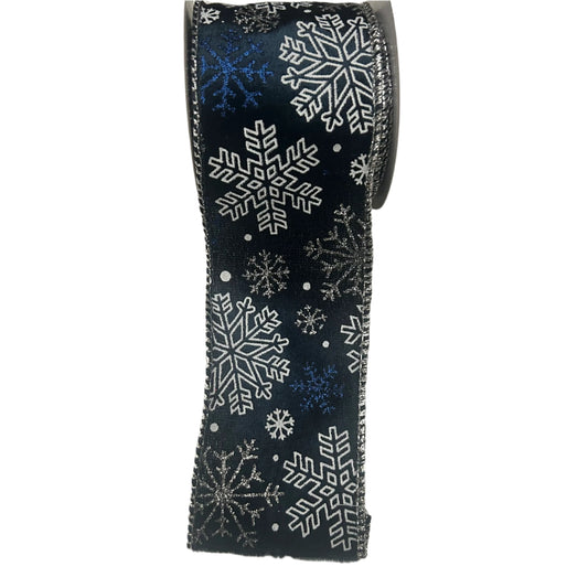Dark Blue and Silver Snowflake Christmas Ribbon 2.7m