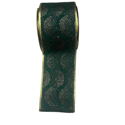 Dark Green and Gold Poinsettia Christmas Ribbon 5m