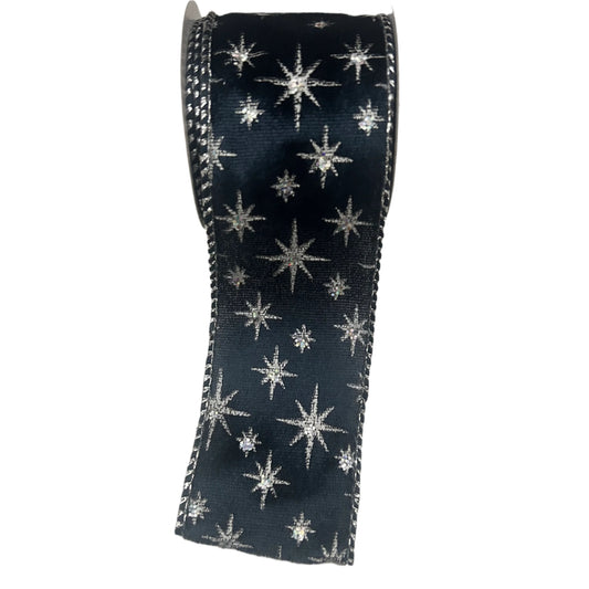 Dark Blue and Silver Star Christmas Ribbon 2.7m