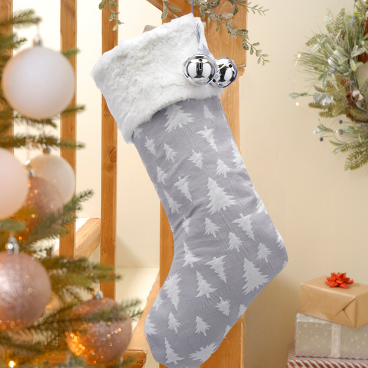 Christmas Grey Stocking with Tree Design 48cm