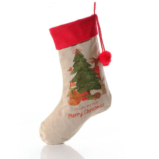 Winter Wonderland Christmas Stocking with Pom Poms